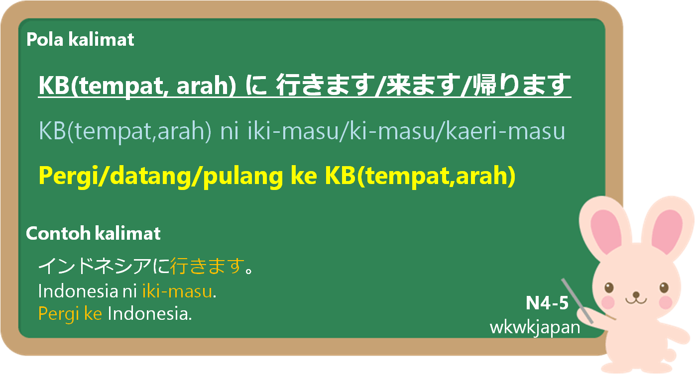 KB(tempat,arah) ni iki-masu/ki-masu/kaeri-masu