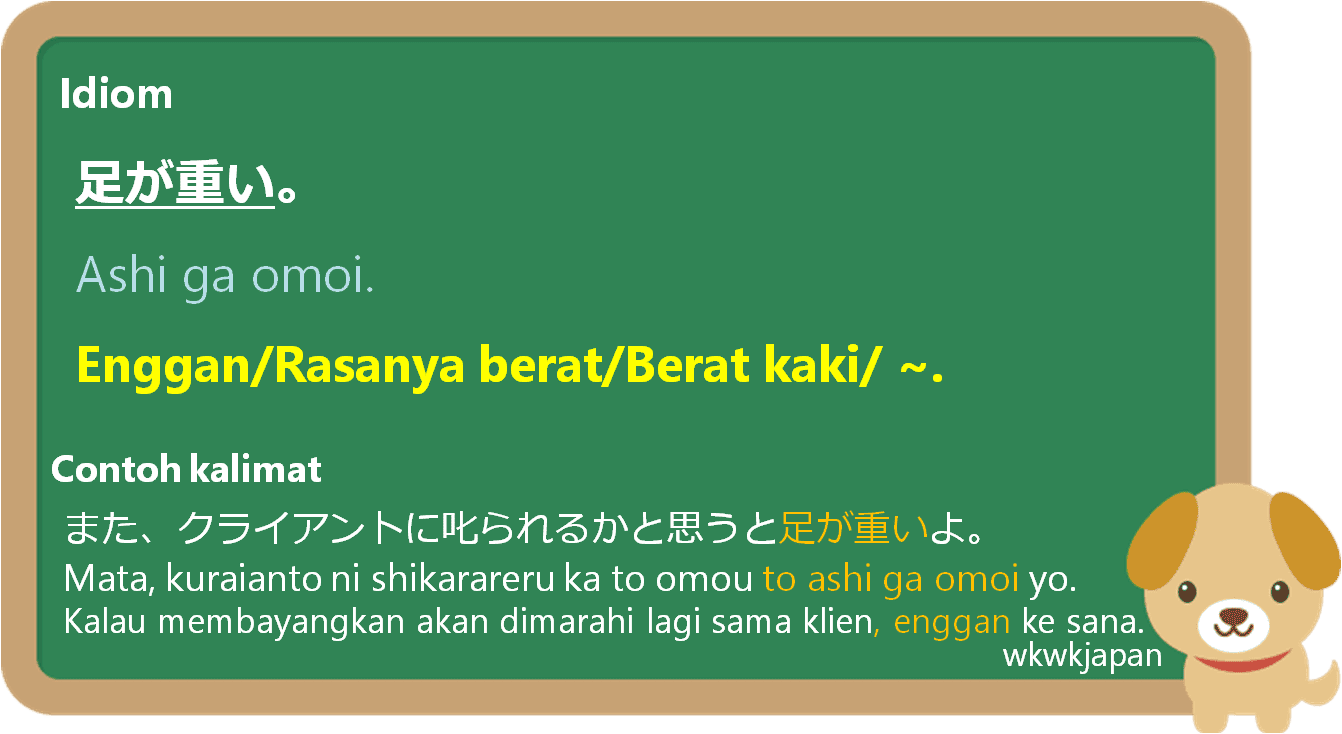 Sepertinya "Ashi ga omoi" dalam bahasa Jepang mirip seperti "Berat kaki" dalam bahasa Indonesia. keduanya sama-sama punya arti "enggan" selain "kakinya berat" secara harfiah. Nah, kali ini kita akan mempelajari idiom “足が重い (ashi ga omoi)” dalam bahasa Jepang. Yuuuk!