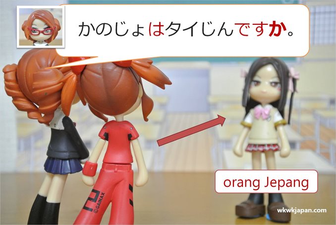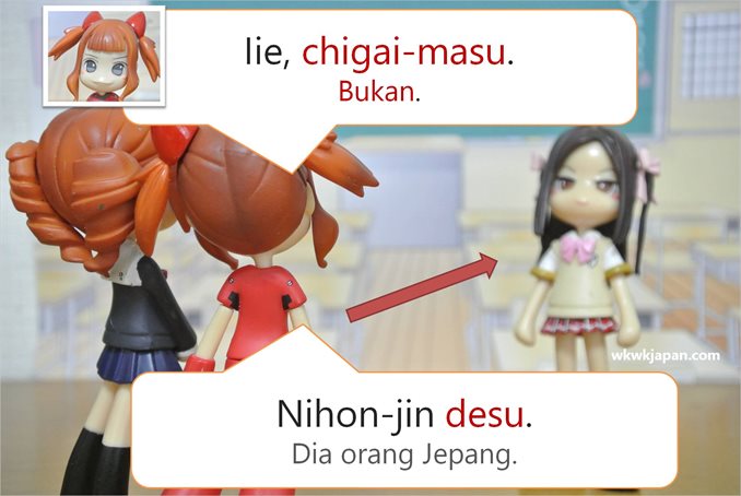 * Oleh karena "Nihon-jin" dan "sensee" dalam contoh kalimat di atas merupakan kata benda (= membentuk kalimat kata benda), “hai, soo desu” dan “iie, chigai-masu” tepat digunakan. Namun, jika Anda ditanya dengan pertanyaan seperti “kanojo wa kawai-i desu ka (apakah dia cantik?)” atau “ kore wa oishi-i desu ka (apaka ini enak?)”, pola kalimat ini tidak dapat digunakan karena kata “kawai-i” dan “oishi-i” bukan kata benda melainkan kata sifat (Kalimat Kata Sifat).