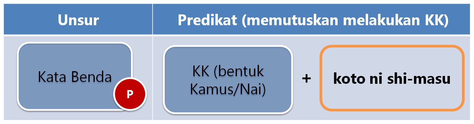KK(Bentuk Kamus/Nai) koto ni shi-masu