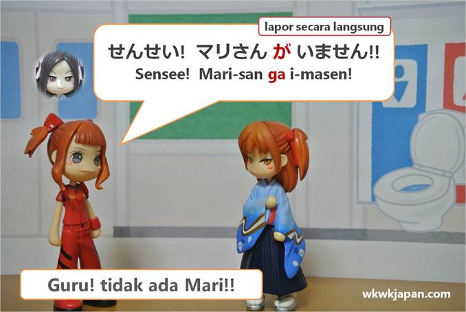 Sensee: Aa, Mari-san wa toire ni i-masu.